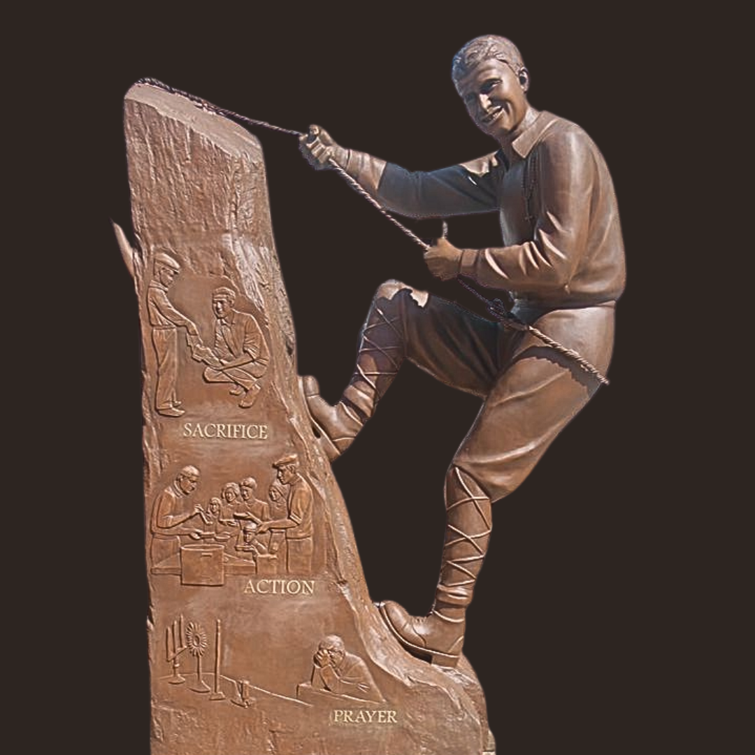Unlike traditional renderings of saints, “Verso l’alto” presents St. Pier Giorgio Frassati in a dynamic, relatable form that speaks directly to the modern Catholic youth. The sculpture vividly portrays him climbing the side of a mountain, an activity he passionately pursued during his life. This visual metaphor of climbing serves as a powerful emblem of Frassati’s spiritual journey, embodying his ascent toward divine unity.